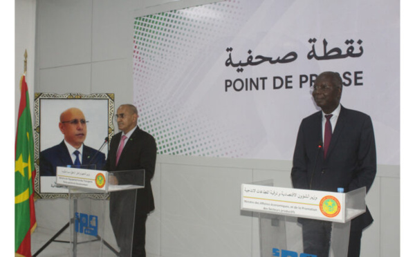 Le ministre de la Culture, de la Jeunesse, des Sports et des Relations avec le Parlement, M. Ahmed Sid Ahmed Dié, accompagné du ministre de la Fonction publique et du Travail, M. Sidi Yahya Ould Cheikhna Ould Lemrabott, du ministre du Commerce, de l’Industrie, de l’Artisanat et du Tourisme, M. Lemrabott Ould Bennahi, et de la...